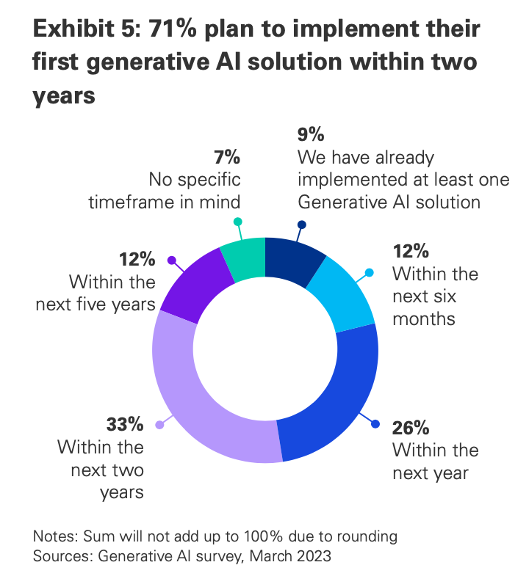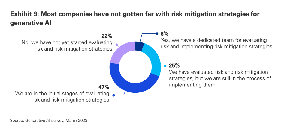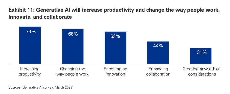 - Economic and Competitive Landscape Shift: If organizations broadly adopt generative AI as suggested, it could lead to a significant transformation in the competitive business landscape. Companies that adapt quickly may gain a substantial edge, potentially creating a wider gap between tech-forward and traditional firms, influencing market dynamics and potentially leading to a new era of digital monopolies or oligopolies.
