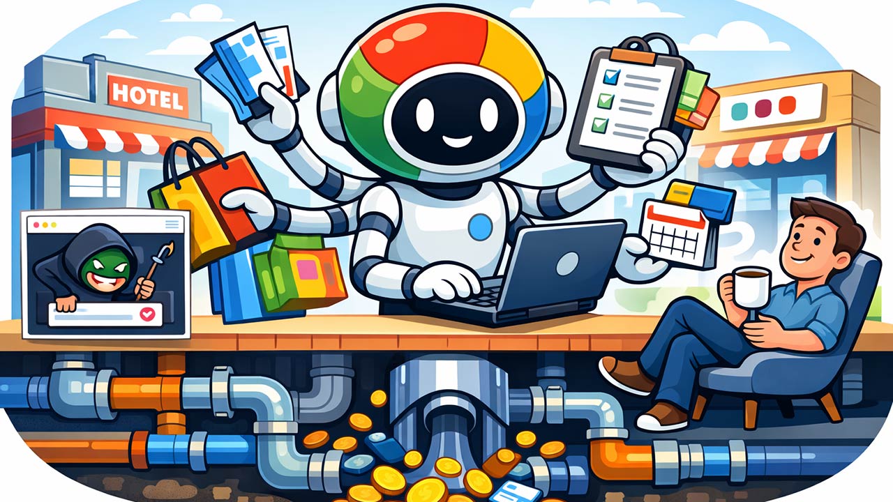 Chrome will now browse the web for you. Auto Browse, powered by Gemini 3, is an agentic feature that navigates websites, fills out forms, compares options, and completes multi-step tasks on your behalf. If you subscribe to Google AI Pro or Ultra, you can ask Chrome to research hotels, compare flight prices, schedule appointments, collect tax documents, or manage subscriptions while you do something else.